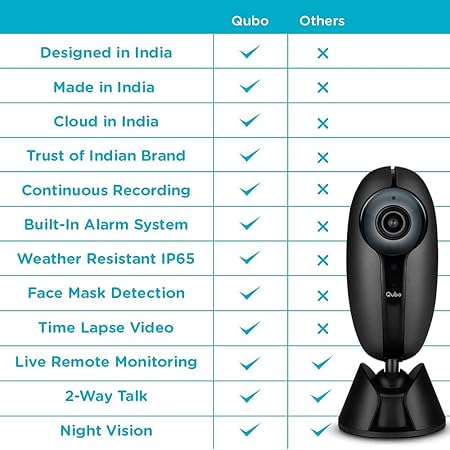 Qubo Outdoor Security Camera (Black) from Hero Group | 2MP 1080p Full HD | Night Vision | Mobile App Connectivity | Cloud & SD Card Recording
